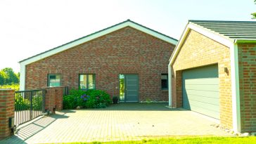 Dieses individuell geplante Bungalow bietet großzügige und offene Räume. Die große Raumhöhe im mittleren Bereich des Hauses erlaubt ausgefallene Raumgestaltung.